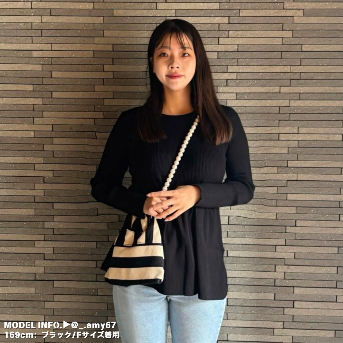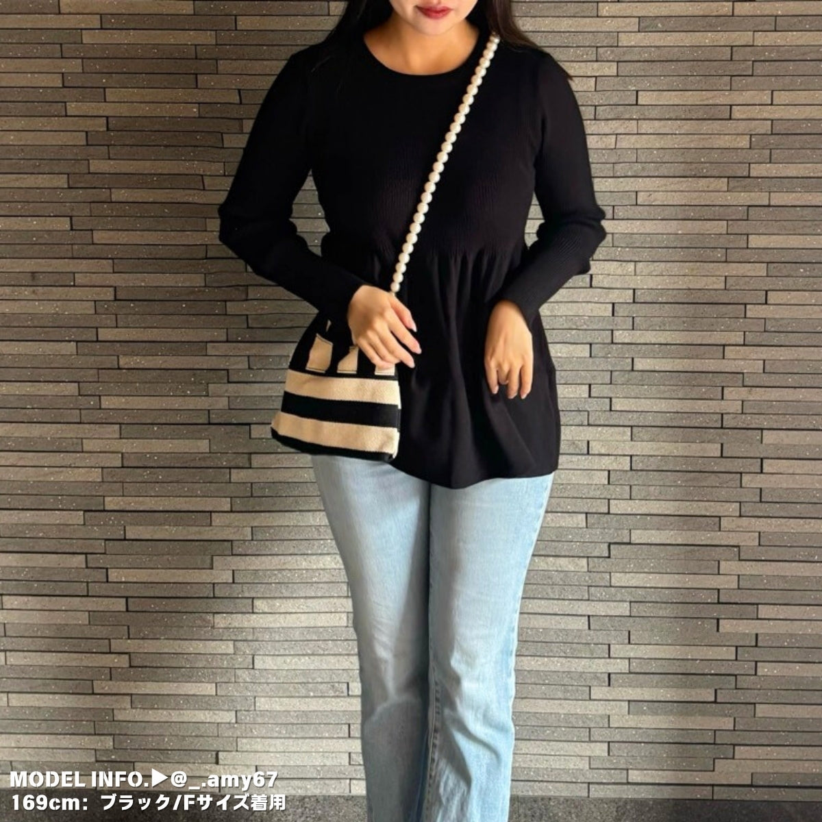 -すっきり細見えするペプラムシルエットのニットトップスです。