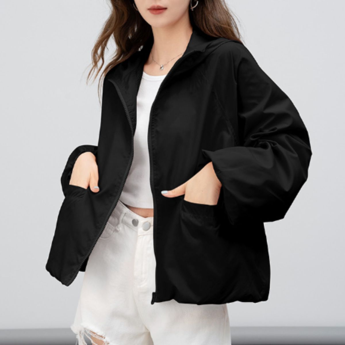 -シンプルで大人な色味がかわいい、ちょこっと羽織りやすいパーカー