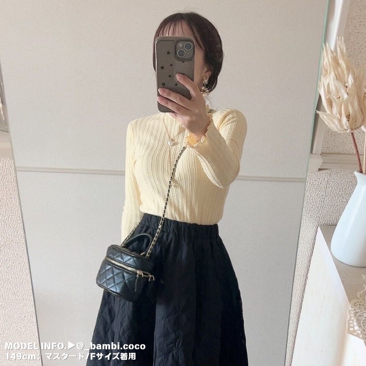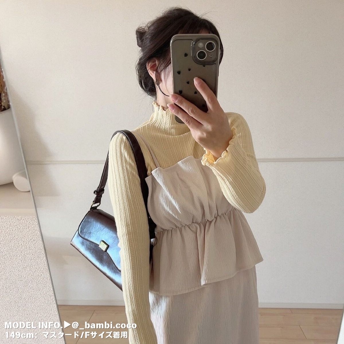 → 実は“詰まったタートル”ではなく、柔らかく伸びるメロウハイネック。ほどよいフィット感で圧迫感が出にくく、長時間着てもラクに過ごせます。