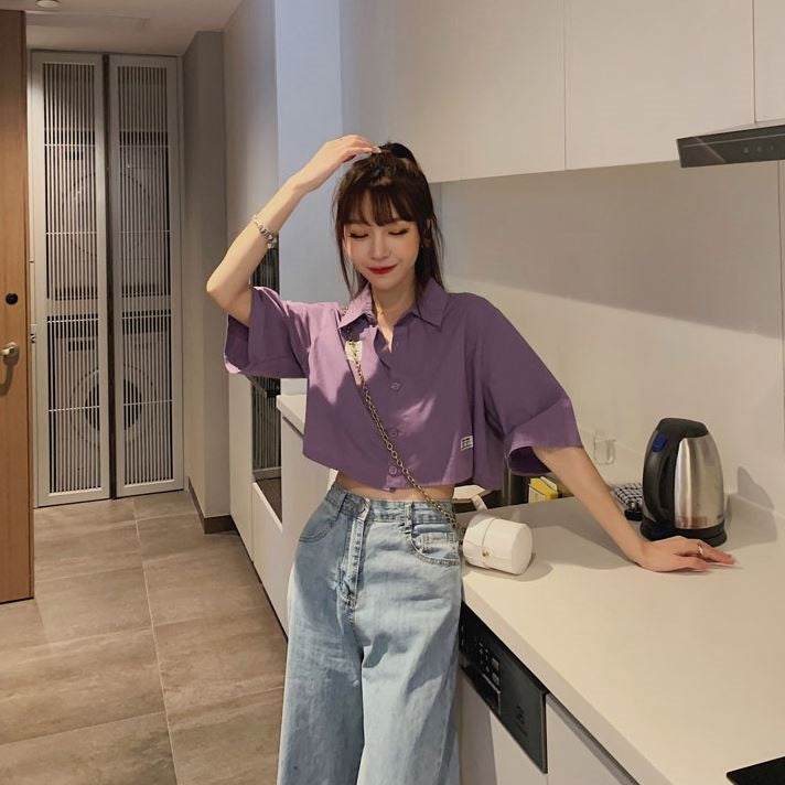 シンプルなのにインパクト抜群オシャレ見えのショート丈シャツ