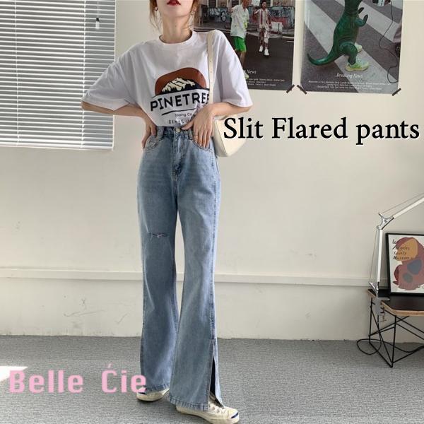 -シンプル見えするフレアパンツをスリットでさりげなくオシャレに