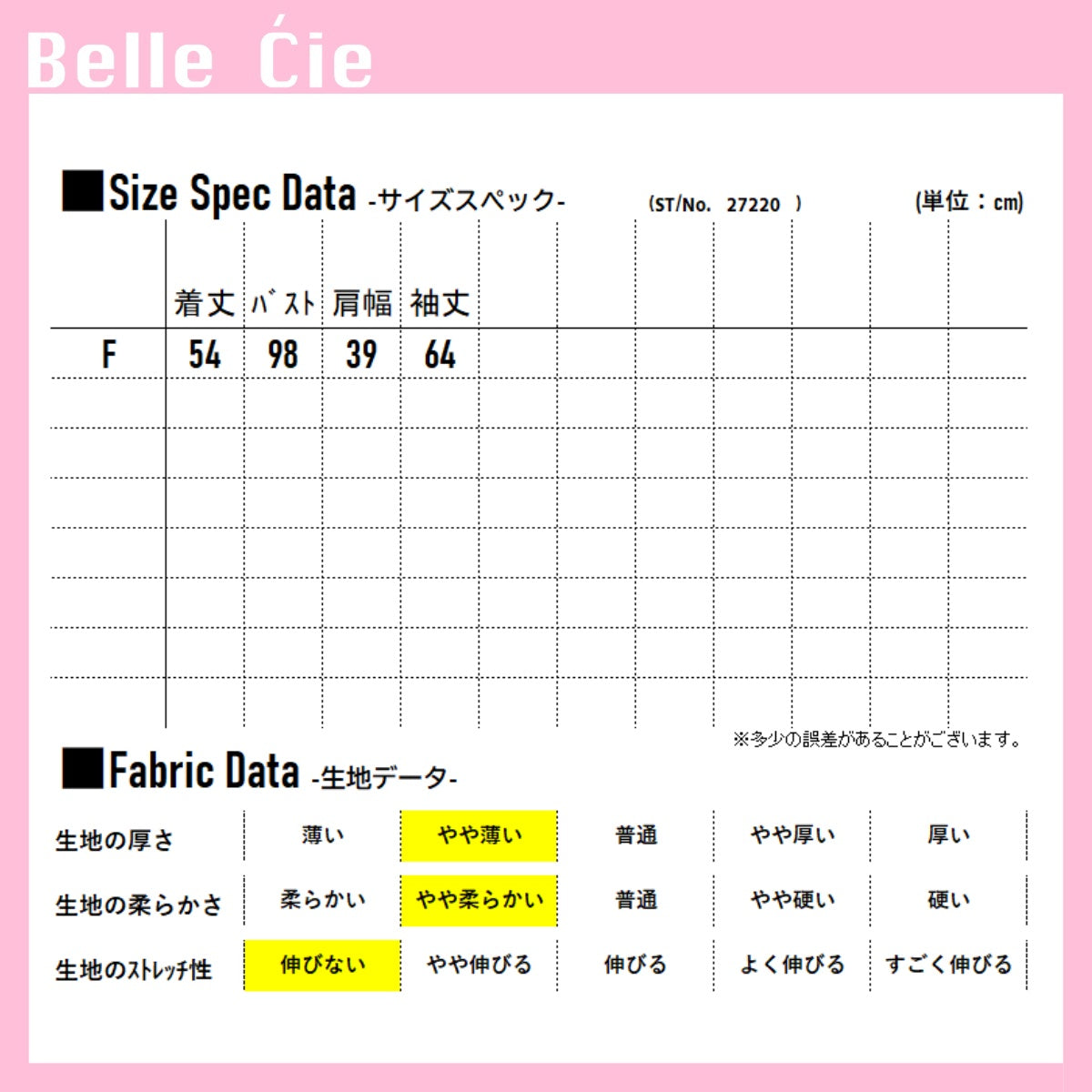 【F】:着丈54 バスト98 肩幅39 袖丈64