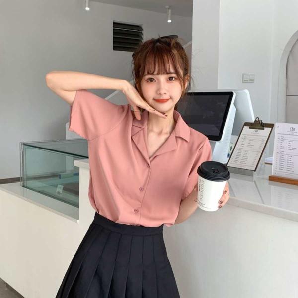 #オープンカラー、#開襟、#夏服#夏トップス、#半そでシャツ、#半袖#テロテロ素材、#ジョーゼット