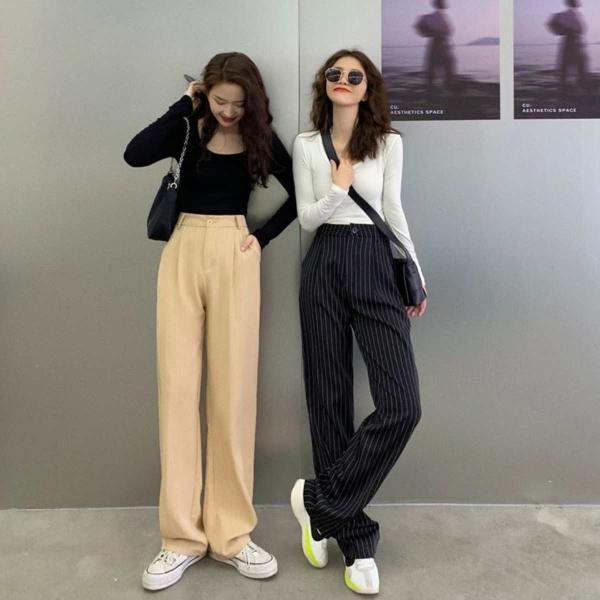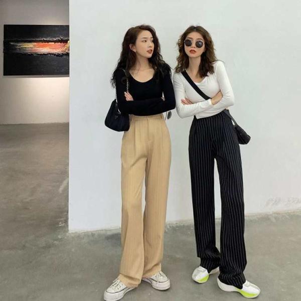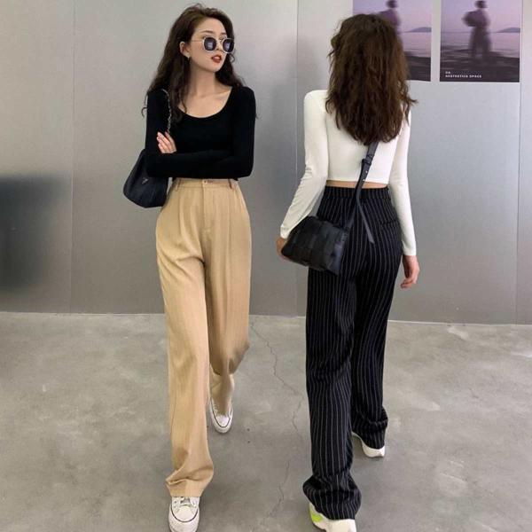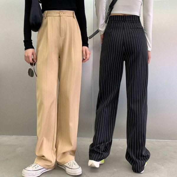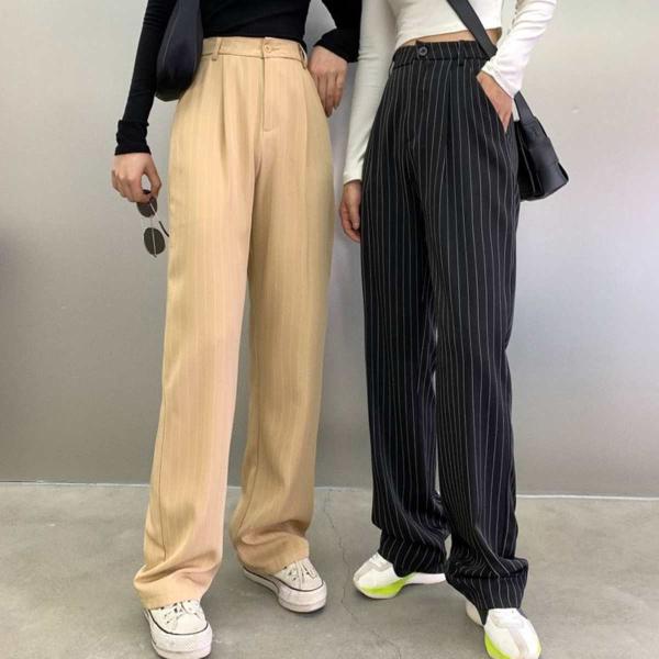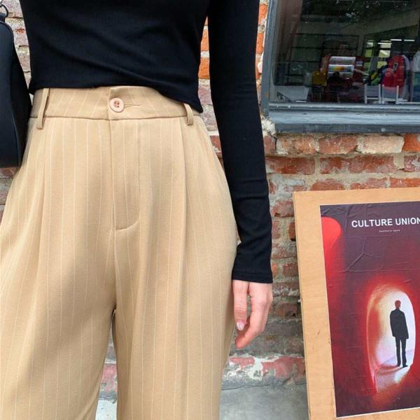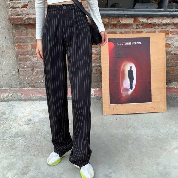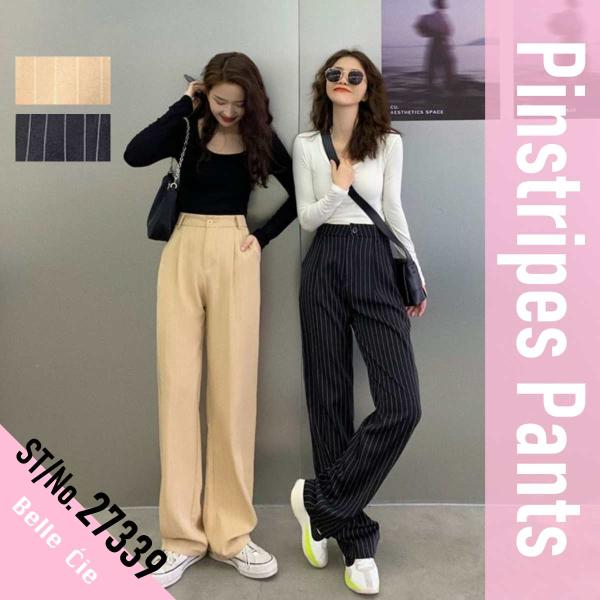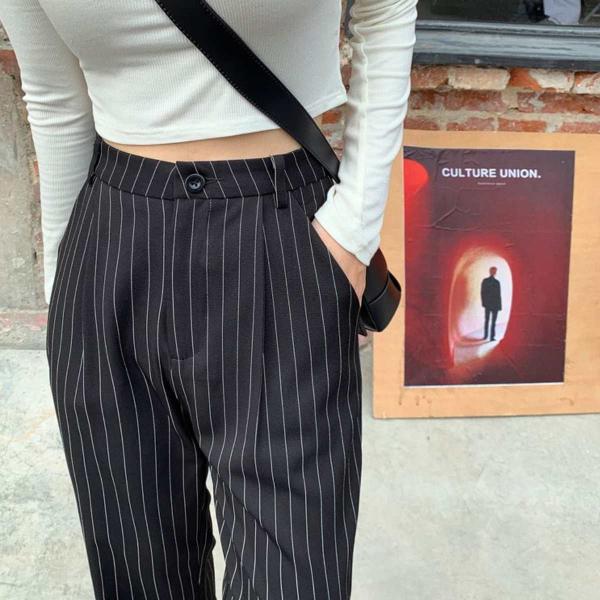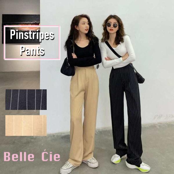 #カジュアル、#ボトムス、#おしゃれ#タックインパンツ、#トレンド、#ピンストライプ#スラックス、#レディースボトムス