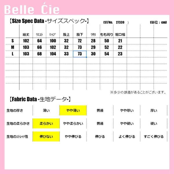 【L】:総丈103 ウエスト68 ヒップ104 股上33 股下73 ワタリ30 もも周り54 裾口幅23