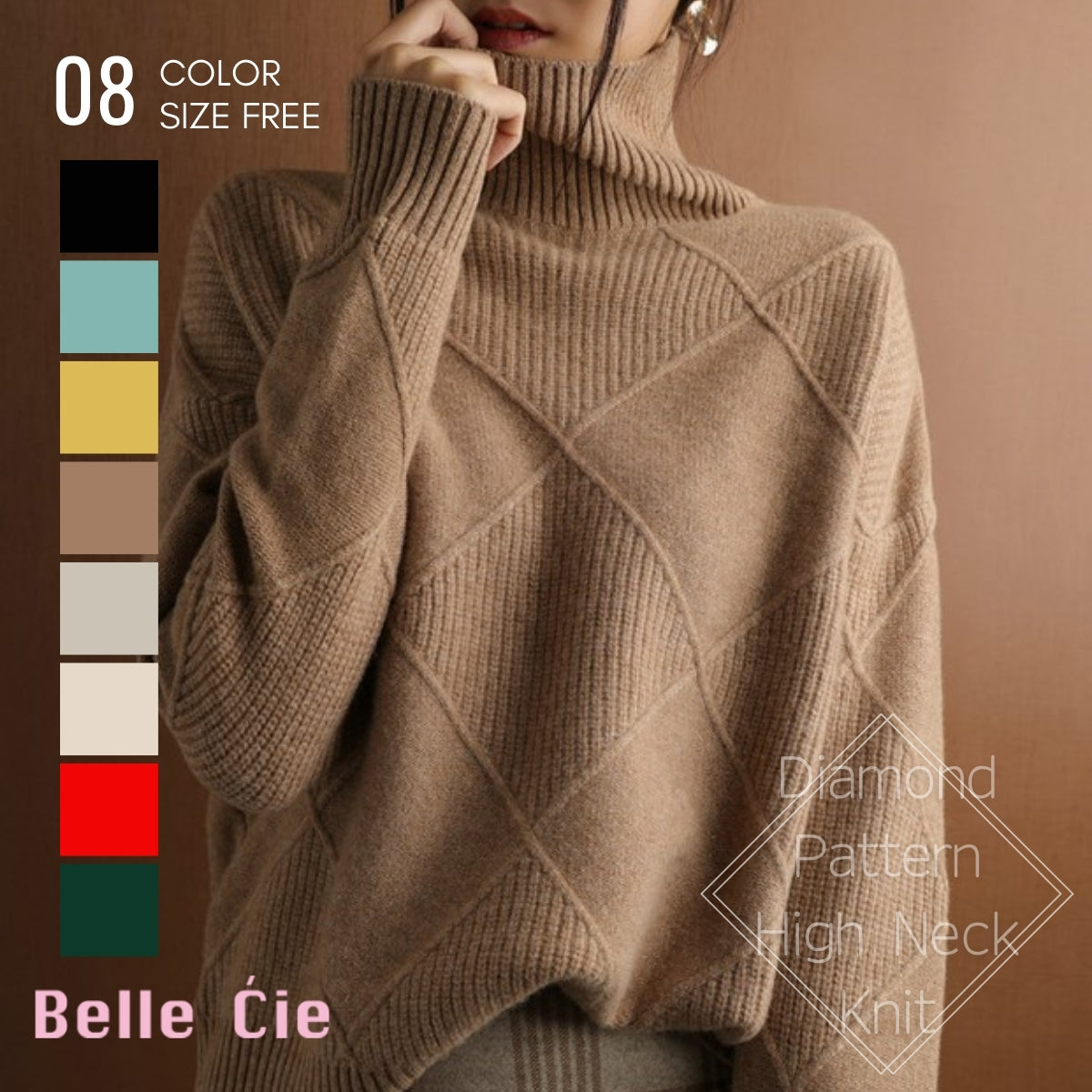 Knit/ダイヤ柄ハイネックニットトップス ST/No.27789
