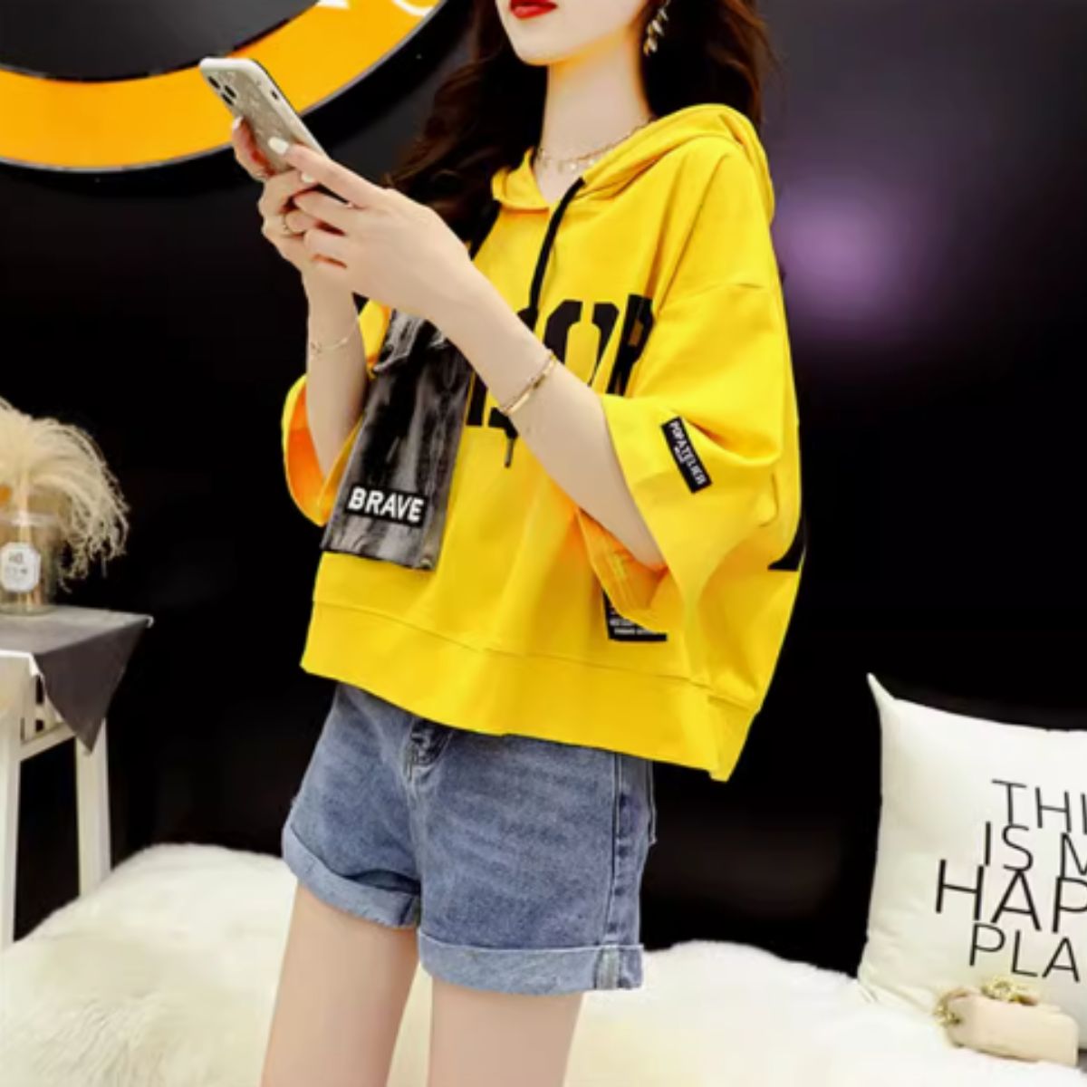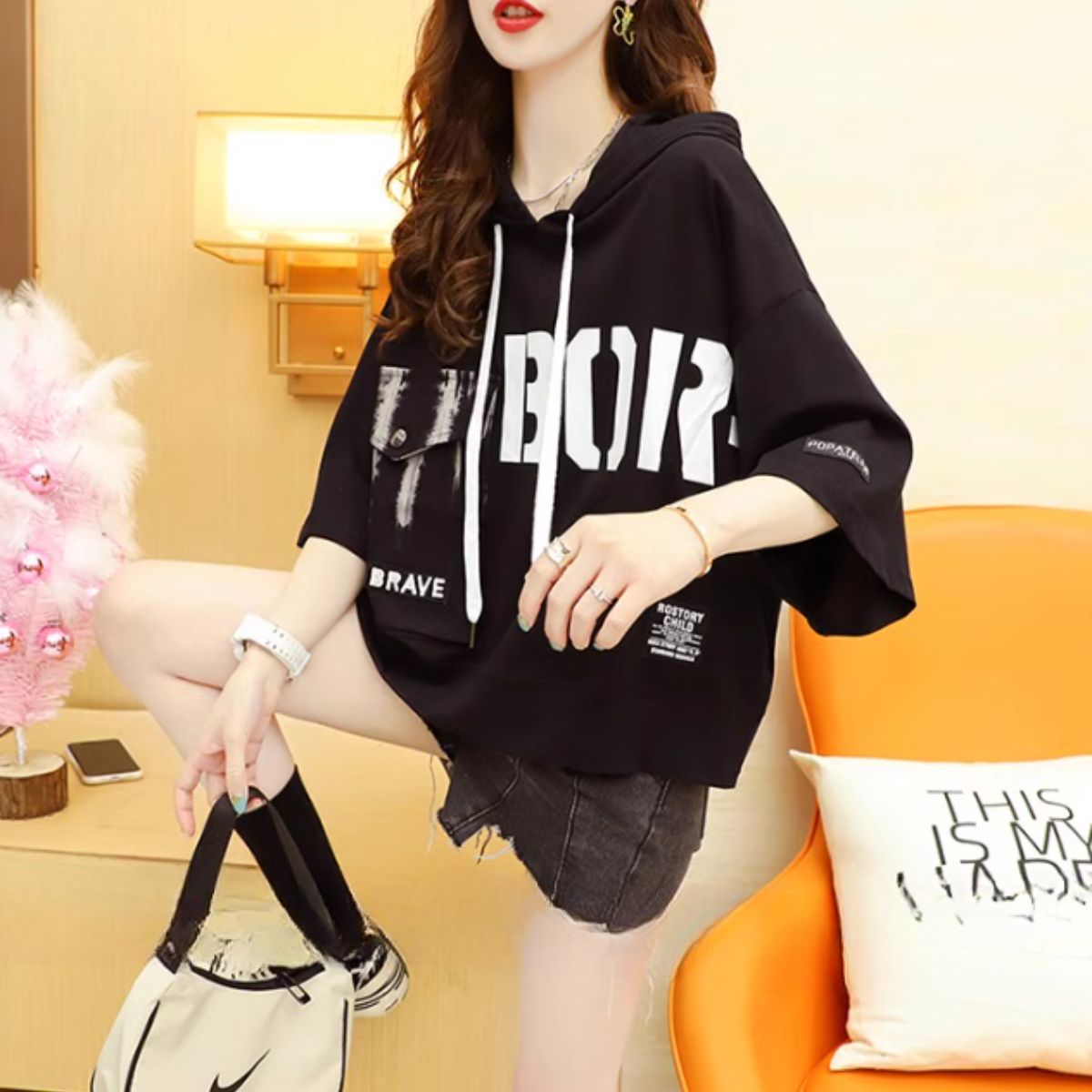 【ビッグシルエット半端丈フーディ】
